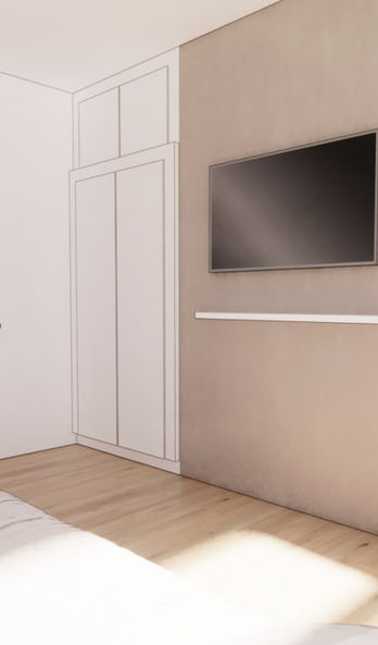 In the bedroom area, we're focusing on optimizing space to create a serene and clutter-free environment conducive to rest and relaxation. Through thoughtful layout and design choices, we aim to strike the perfect balance between functionality and aesthetics.